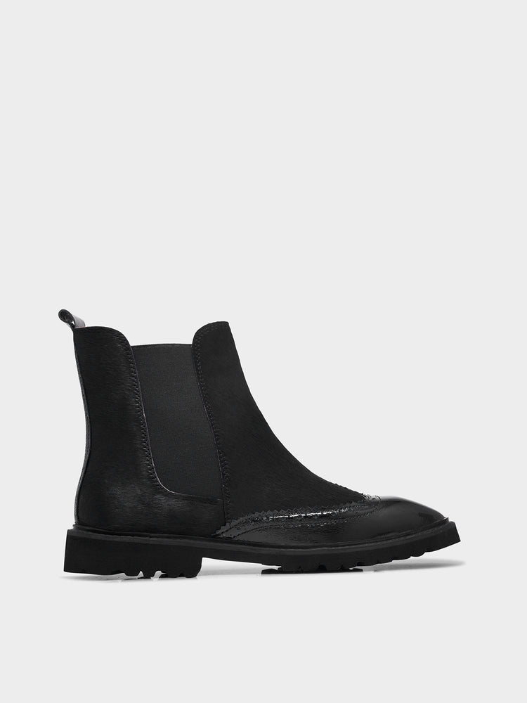 Premium patent leather with hair finish for a unique, refined look