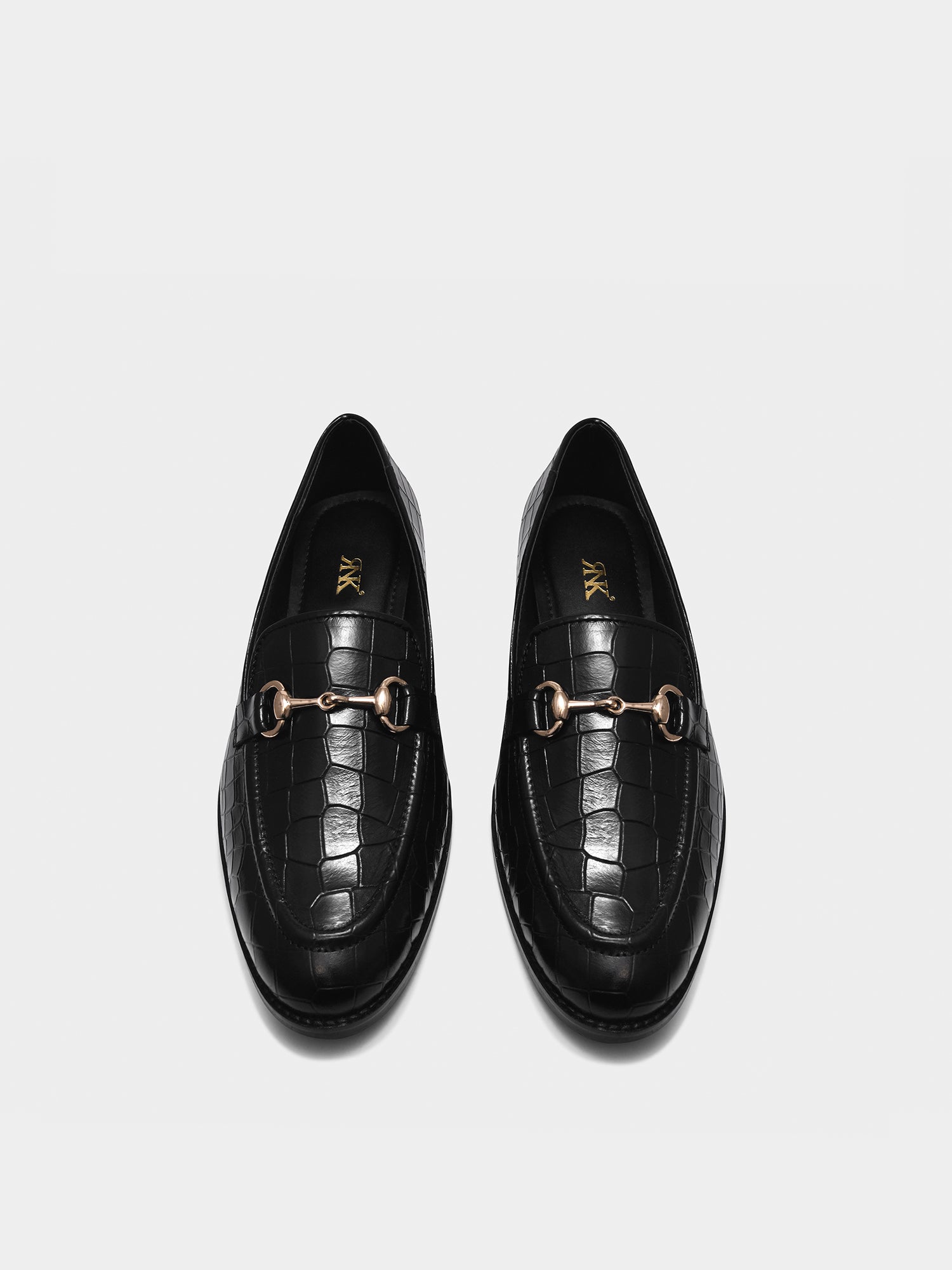 Experience the perfect blend of luxury and contemporary design with the RNK Regal Crocs Loafer. Crafted in premium croc-textured premium leather, these loafers exude timeless elegance. The gold-toned hardware detailing adds a sophisticated accent, while the black hue ensures versatility for both formal and semi-formal occasions.